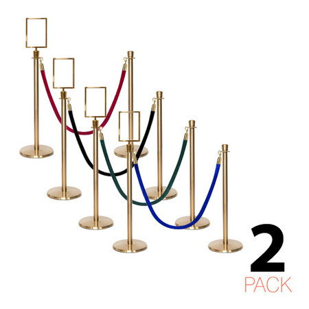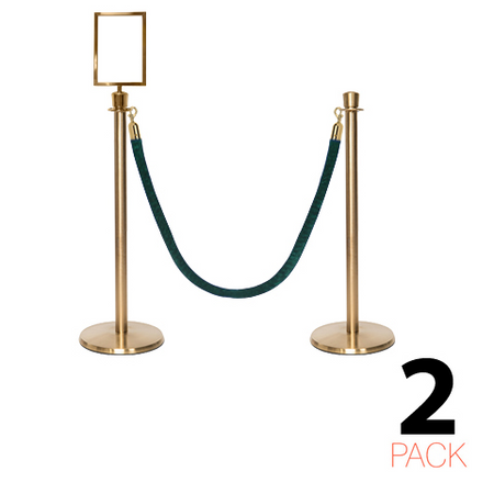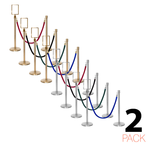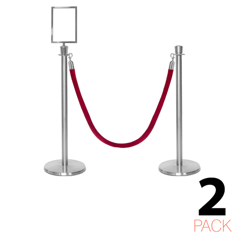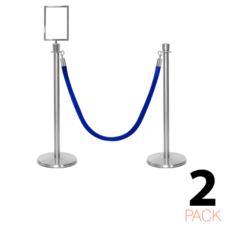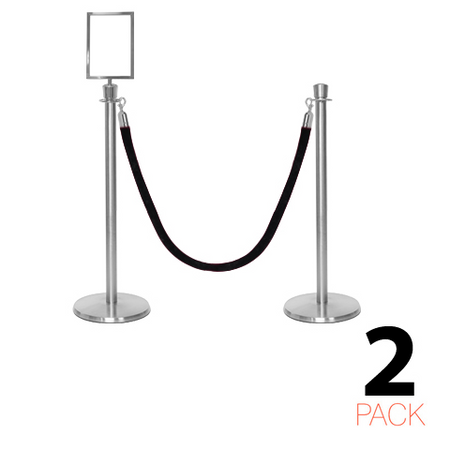 - Lot de 2 poteaux de corde premium avec embout en couronne et un support de panneau A4 inclus