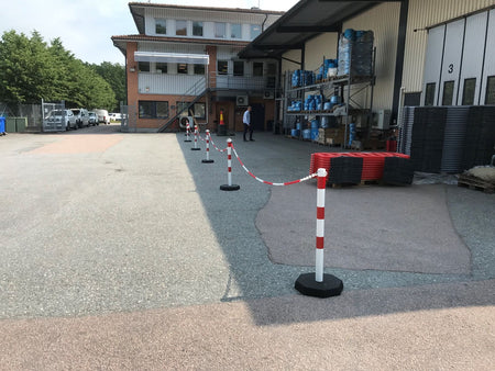 - Le système de barrière à poteaux et chaîne est idéal pour des barrières temporaires, des limites flexibles, le contrôle des files d'attente, ou pour créer des zones ou espaces de travail sécurisés
