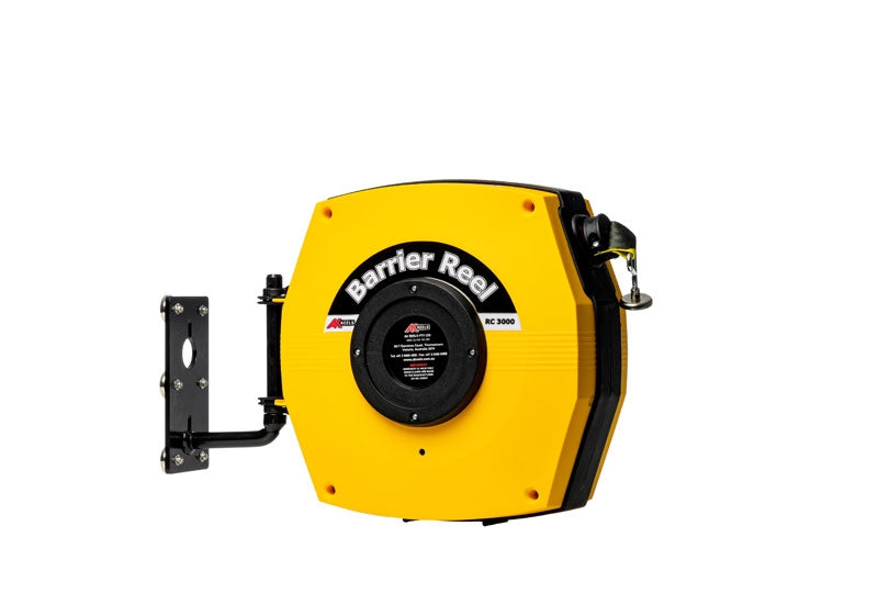 Le tambour peut être monté simplement sur un mur, la sangle de la barrière est ensuite tirée et placée sur un crochet ou un support sur le mur ou le pilier opposé, puis facilement et rapidement rétractée lorsque l'accès est requis par des camions ou des chariots élévateurs.