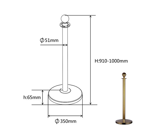 18 pcs – Poteau de barrière à tête sphérique basique (Laiton poli / Or)
