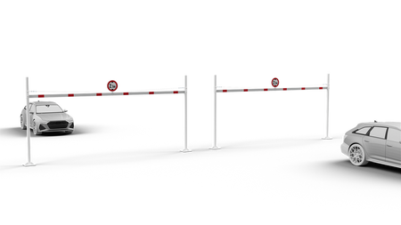 Barrière de restriction de hauteur avec 2 poteaux carrés (largeur 3-9m)