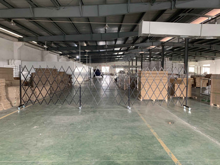 Il vous suffit de déployer la barrière extensible et de verrouiller les roues lorsqu'elles sont dans la bonne position. La barrière mesure 6,7 m entièrement déployée, mais peut facilement être prolongée à la longueur souhaitée en connectant d'autres barrières. Cela se fait en connectant la barrière suivante au support intégré.