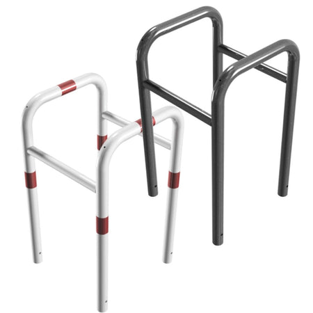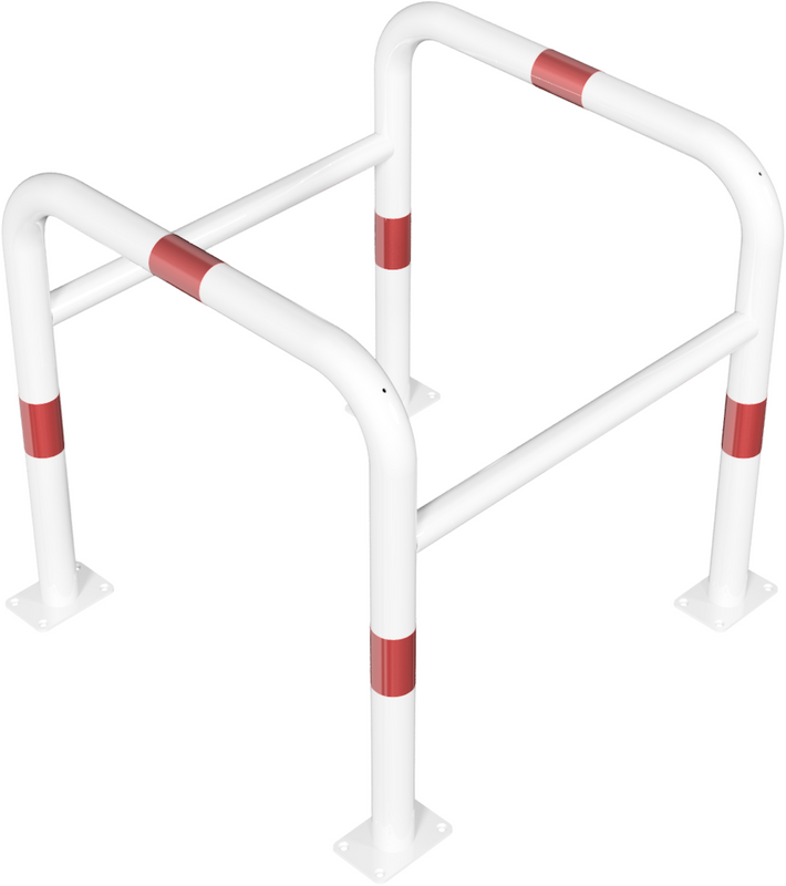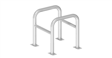 Arceau de protection anti-choc pour arbres et poteaux, construction en tube d'acier avec 2 arceaux Ø 60 mm avec barres transversales soudées Ø 48 mm pour emboîtement.