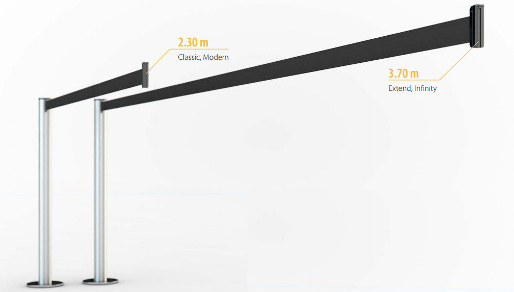 C'est notre barrière la plus populaire pour les détaillants et ceux du secteur des loisirs et du divertissement, le design élégant et la finition soignée de ces barrières rétractables sont conçus pour compléter la plupart des schémas de couleurs et des aménagements intérieurs. Chaque poteau est doté de 4 rainures en queue d'aronde qui fonctionnent comme récepteurs intégrés pour les ceintures rétractables. Chaque poteau est équipé d'une base standard caoutchoutée non marquante pour protéger le sol.