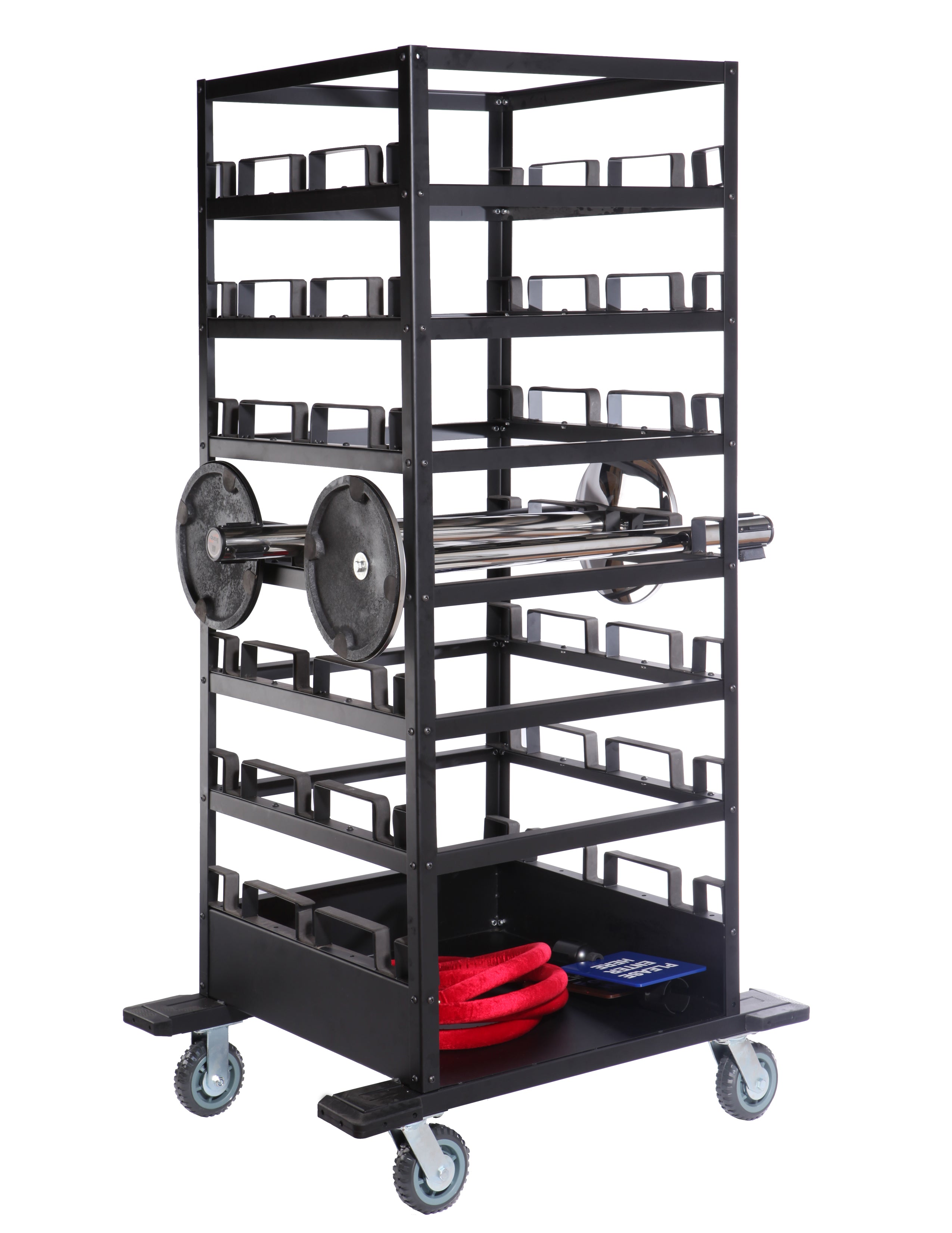 - Chariot de stockage conçu pour contenir 18 poteaux