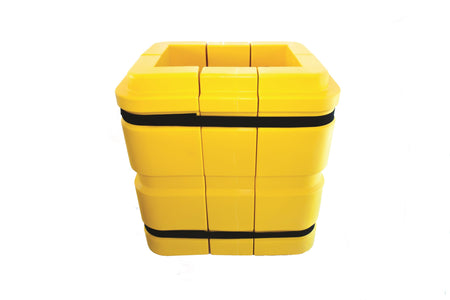 Le système est fourni en 4 sections en équerre et peut être étendu au-delà de 400 mm carrés à l'aide de remplissages optionnels (110 mm ou 250 mm), permettant la protection de colonnes et structures plus grandes. L'installation est rapide et simple grâce aux sangles velcro fournies – aucun fixage ou perçage requis.