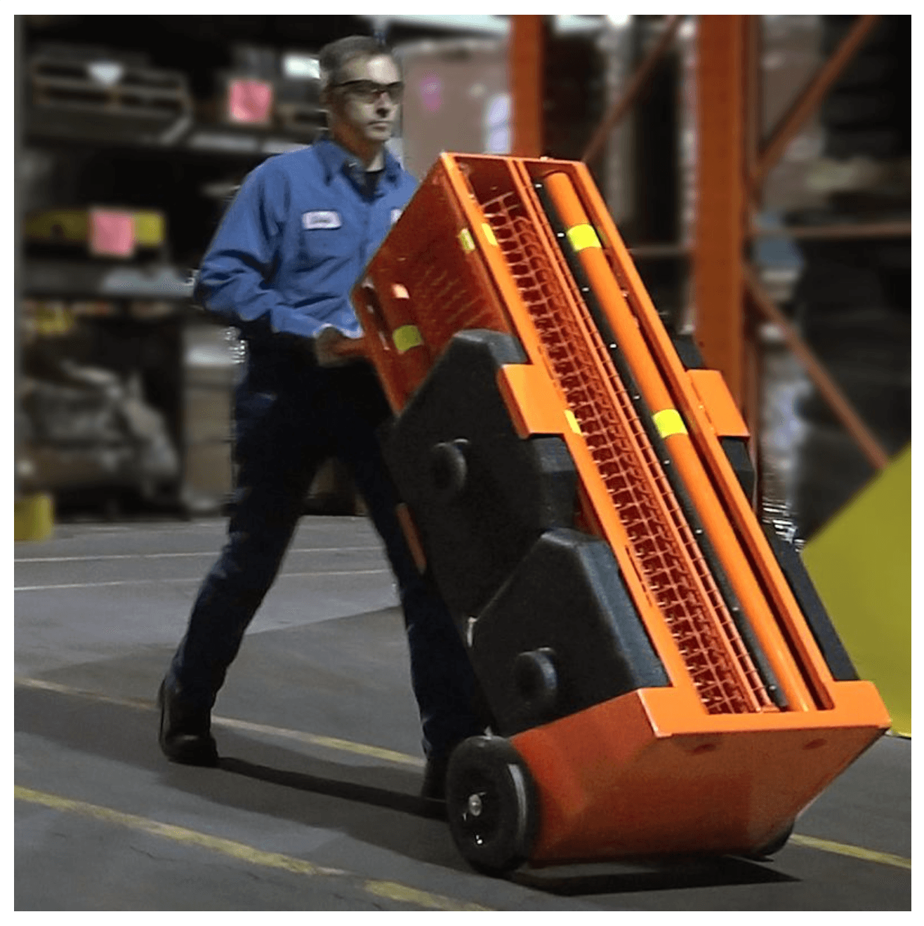 - Transportez la zone de sécurité portable à l'emplacement souhaité à l'aide du chariot mobile intégré.