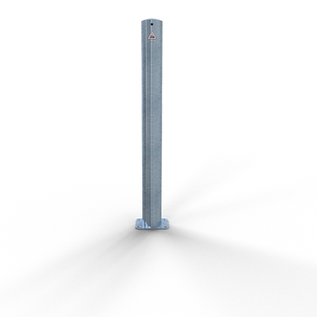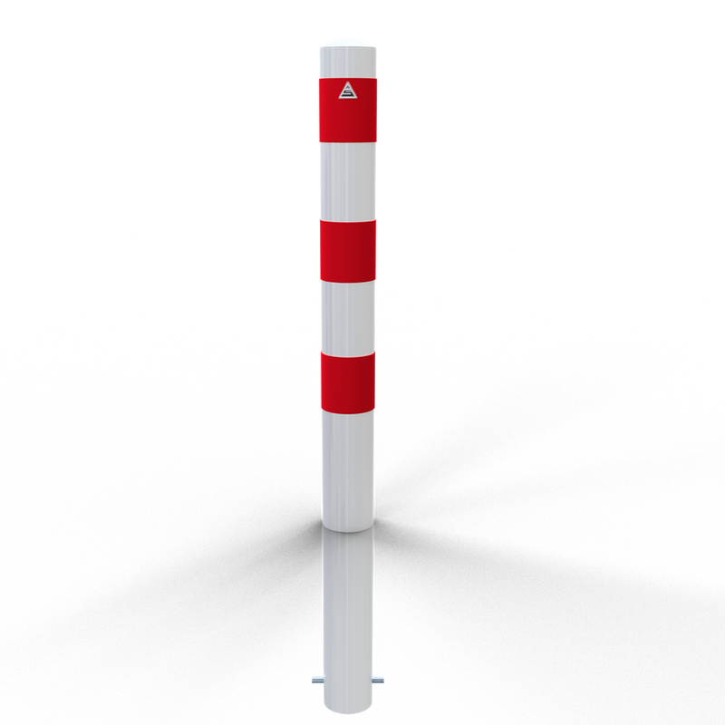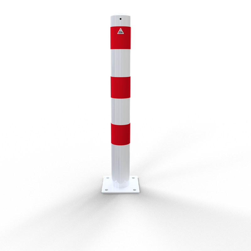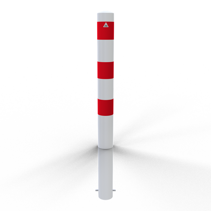 - Borne en tube d'acier disponible uniquement en finition galvanisée à chaud ou en finition galvanisée à chaud avec revêtement en poudre blanc ou jaune, avec des bandes réfléchissantes rouges/noires haute visibilité