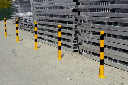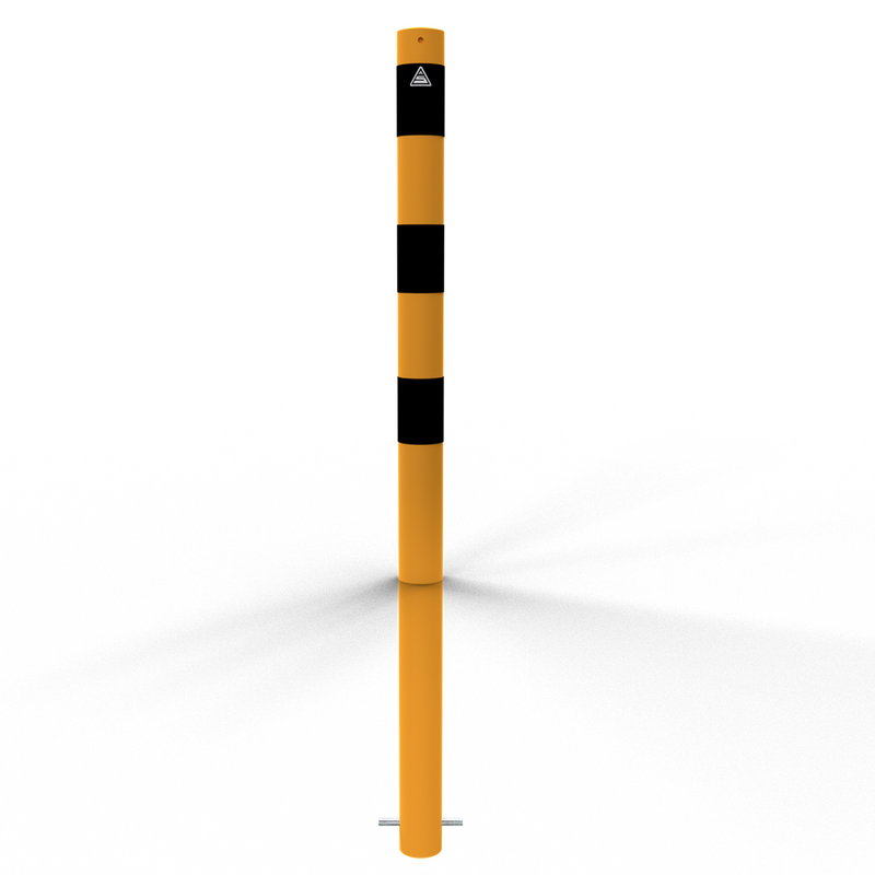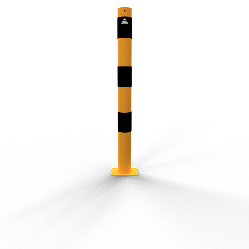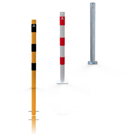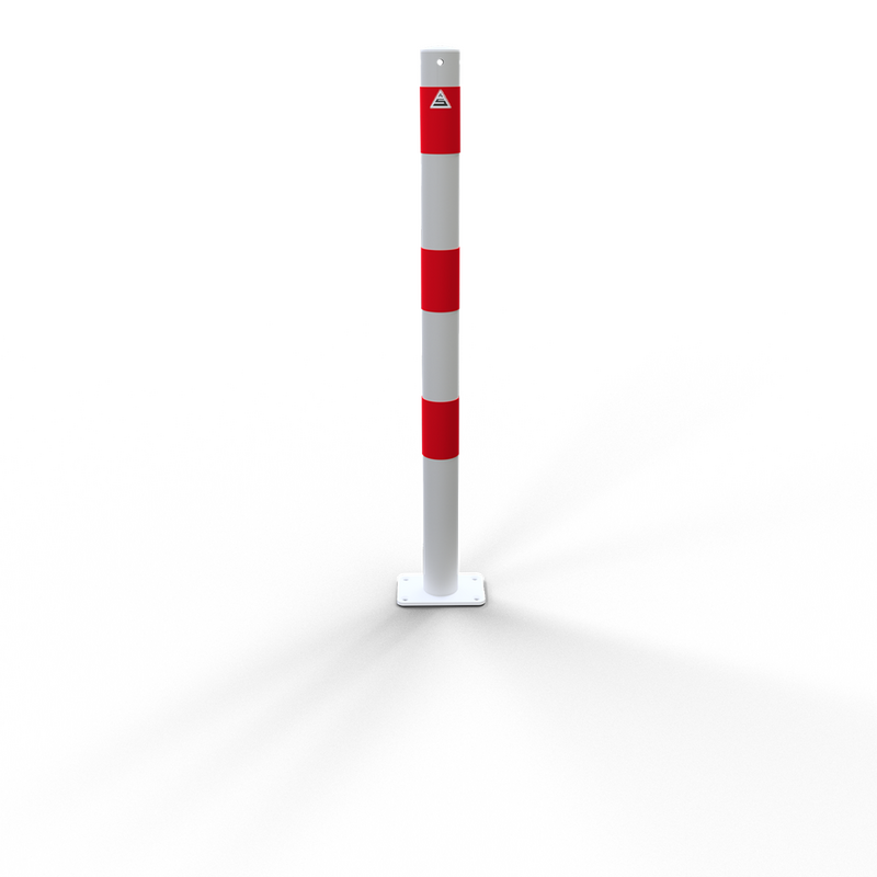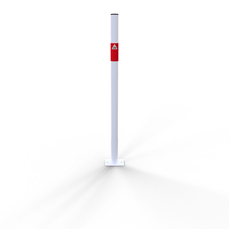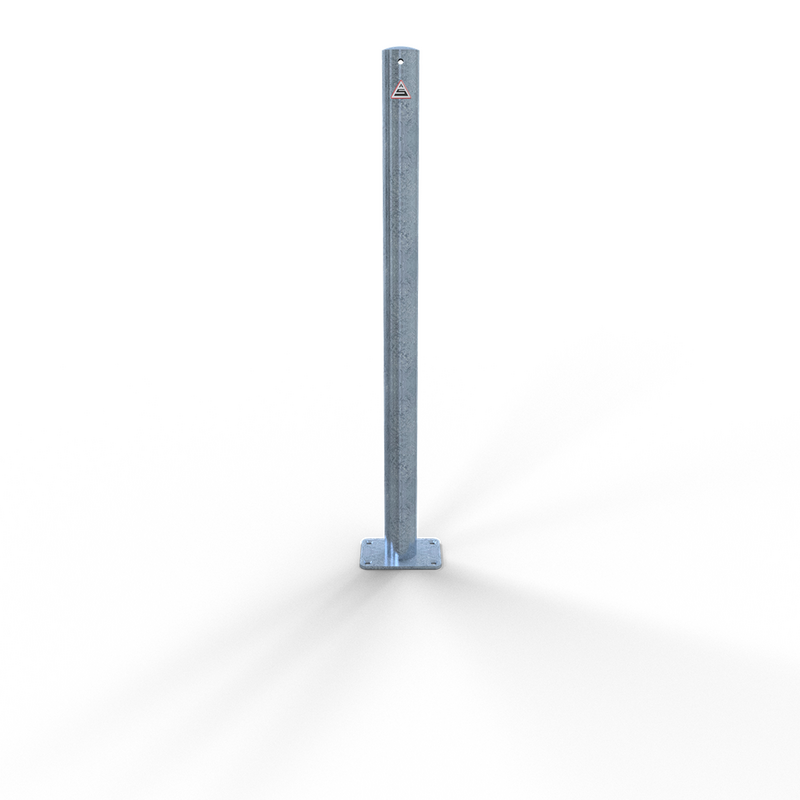 - Borne en tube d'acier disponible uniquement en finition galvanisée à chaud ou en finition galvanisée à chaud avec revêtement en poudre blanc ou jaune, avec bandes réfléchissantes rouges/noires haute visibilité