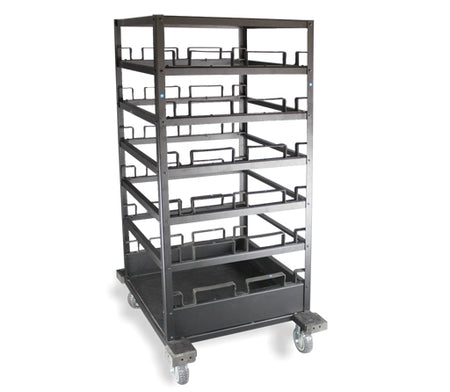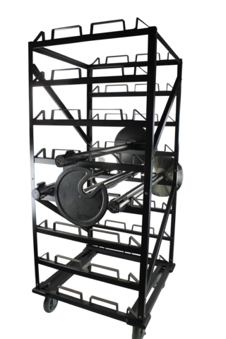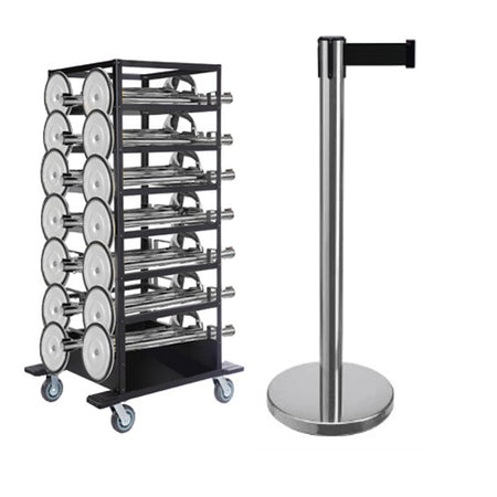 - Chariot de transport en acier robuste avec roues directrices de 6” permet un rangement et un déplacement faciles de jusqu'à 18 poteaux.
