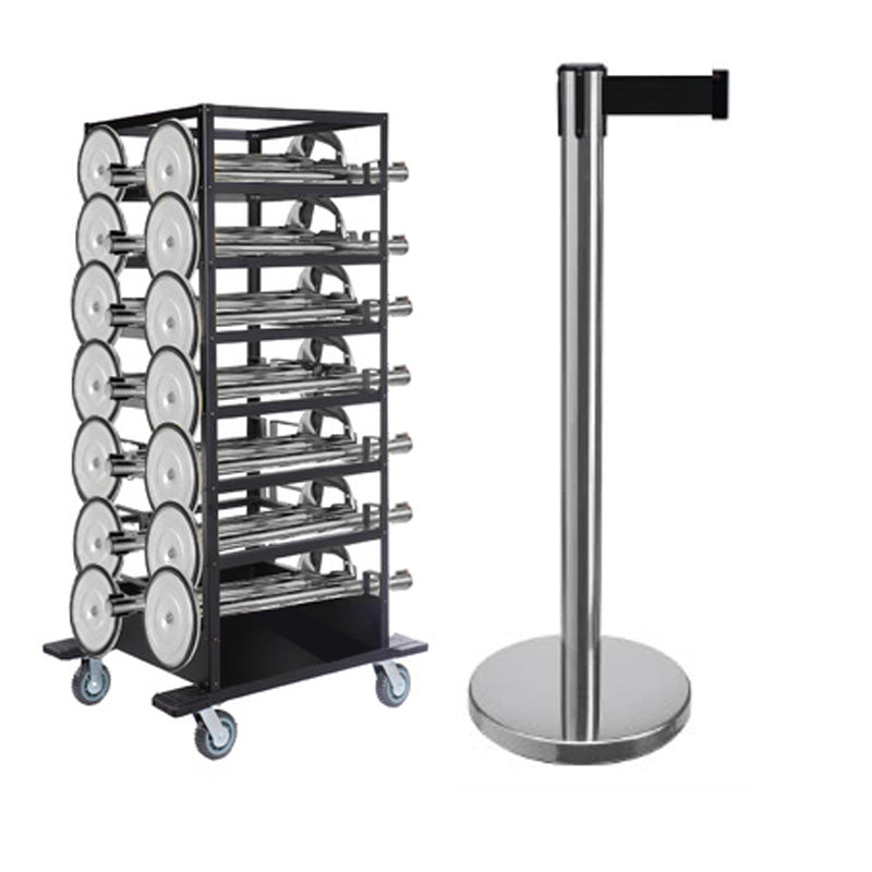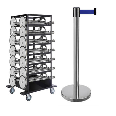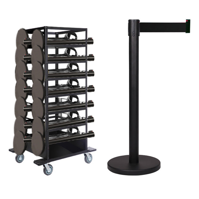 - Ensemble de barrières à sangle avec chariot pour le contrôle des foules, la sécurité et la formation de files, conçu pour un assemblage rapide et facile.