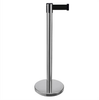 - Des poteaux de barrière Ø 64 mm avec base sont disponibles en finition noire et chrome poli, avec un choix de ceintures de couleur noire, rouge et bleue.