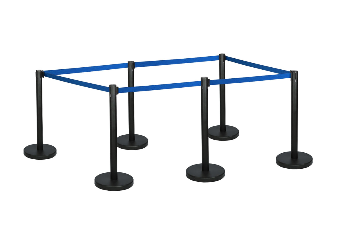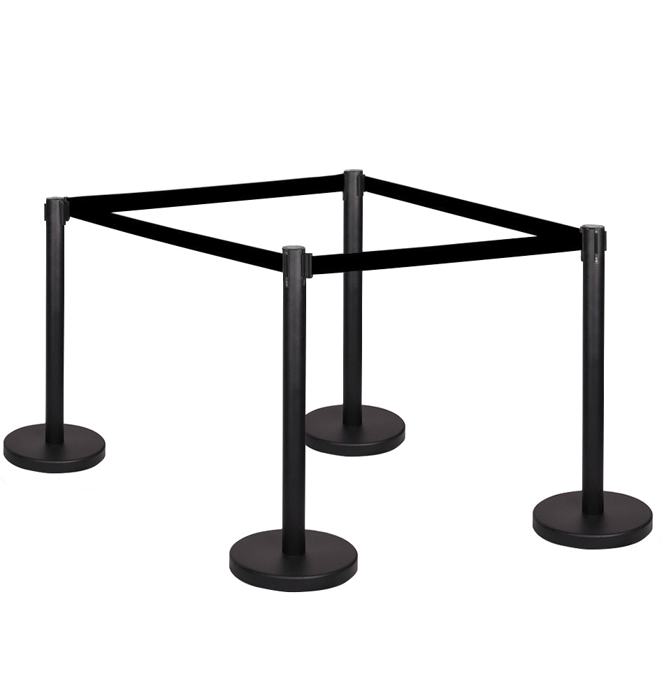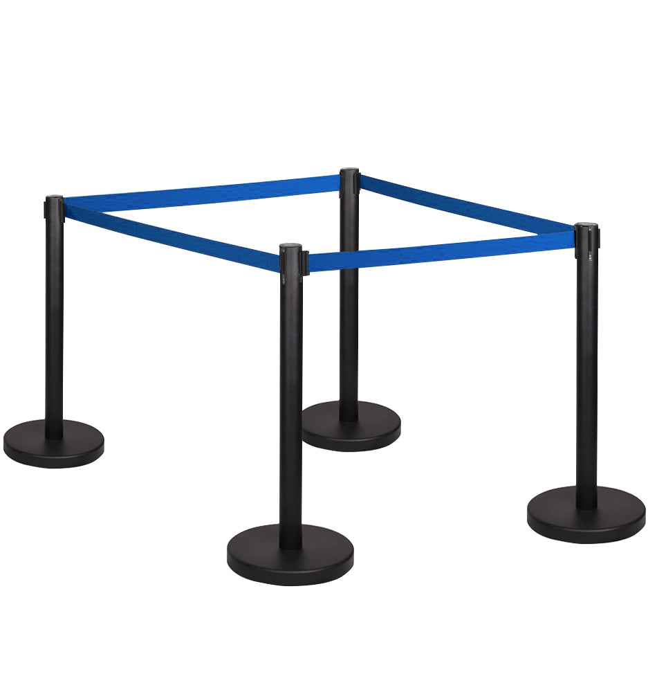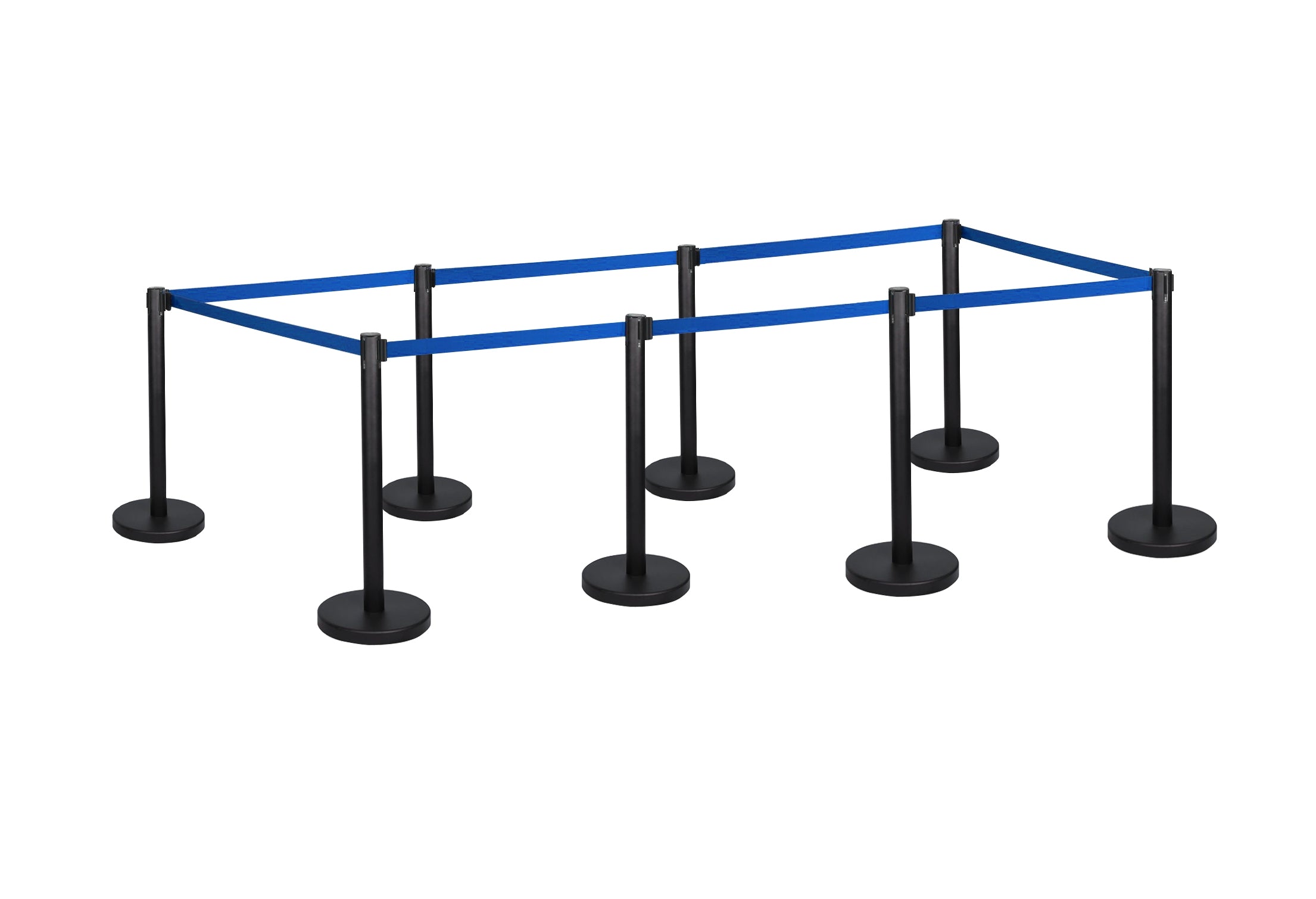 Installation facile. Assemblage rapide et facile avec seulement 1 vis. Aucun outil requis. Le poteau se dévisse et se range à plat. Tirez sur la ceinture et connectez-la au poteau suivant ou à un mur avec un réceptacle mural.