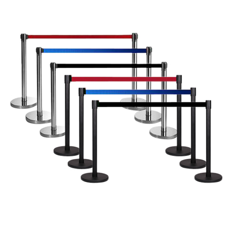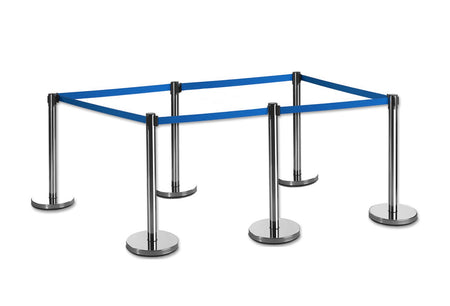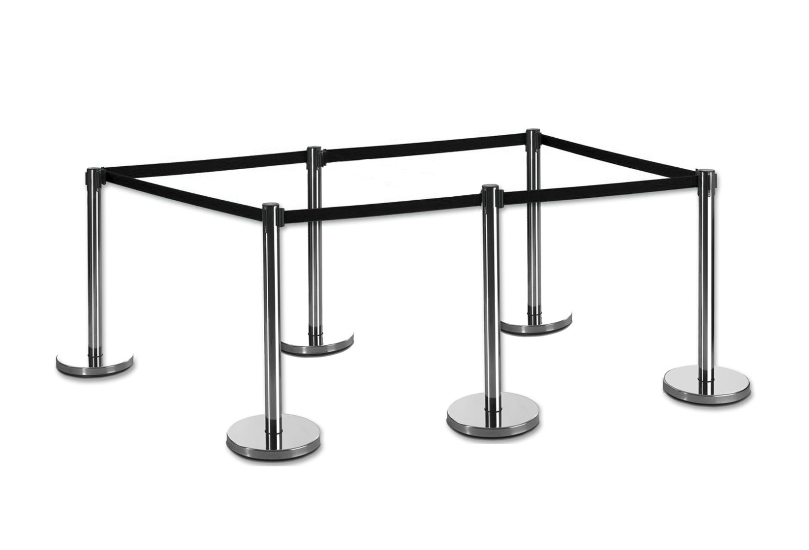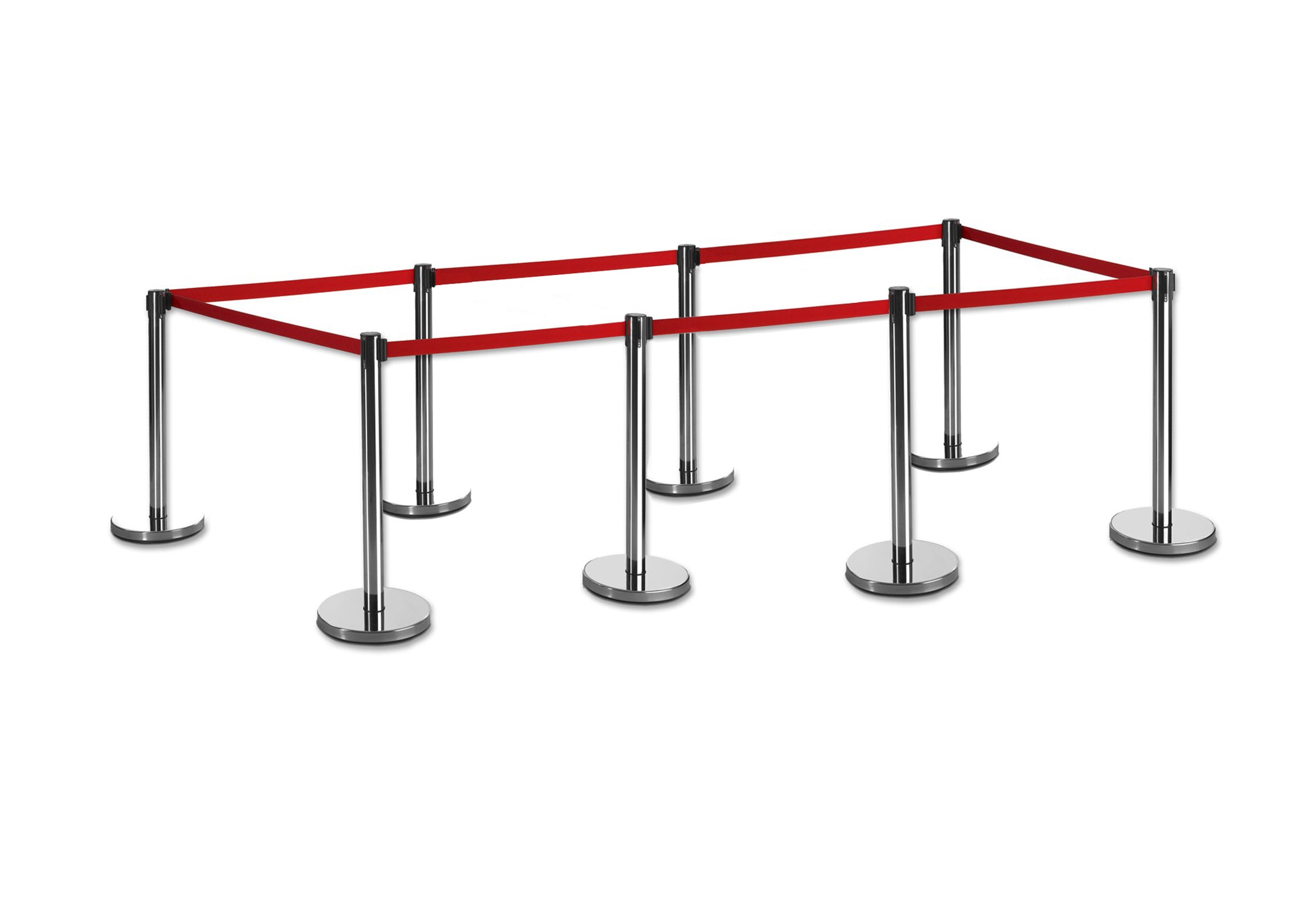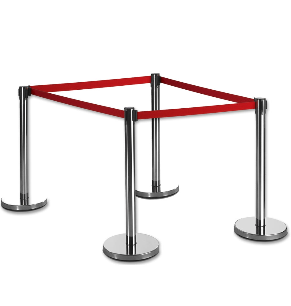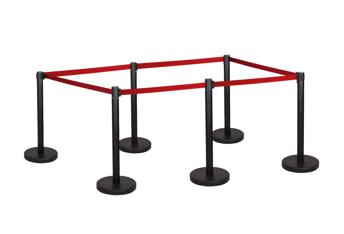 Installation facile. Assemblage rapide et facile avec seulement 1 vis. Aucun outil requis. Le poteau se dévisse et se range à plat. Tirez sur la ceinture et connectez-la au poteau suivant ou à un mur avec un réceptacle mural.