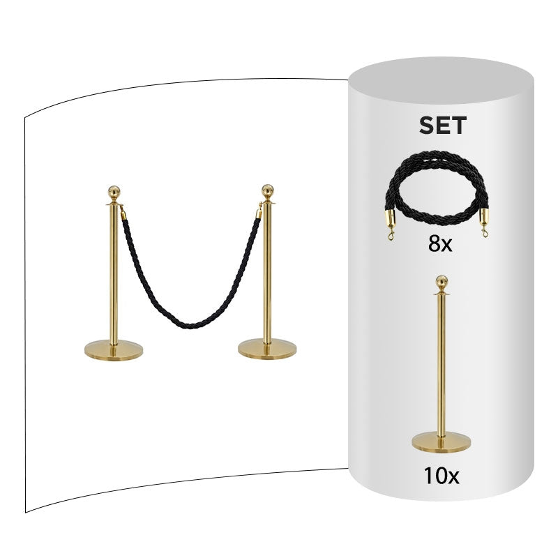 Ensemble de Barrière à Corde et Poteau Flexibarrier -Tête de Balle Basique- (Paquet avec poteaux et cordes)