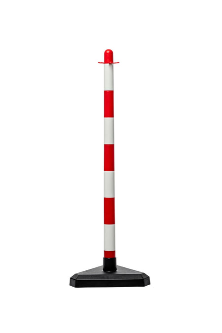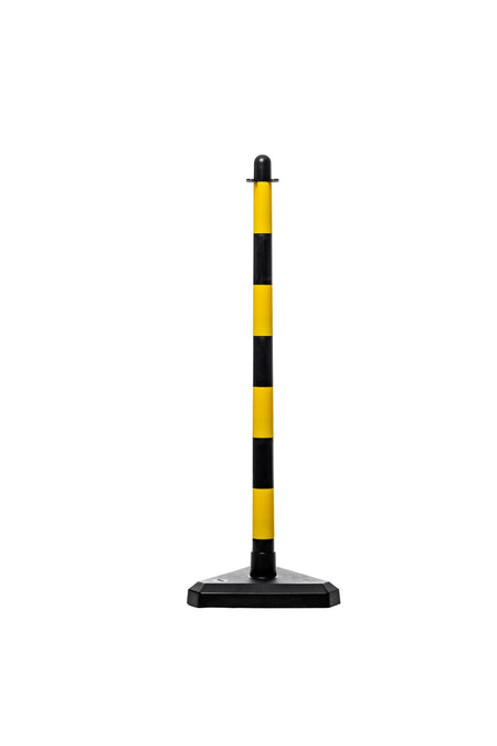 Ce poteau de barrière à chaîne Flexibarrier Basic de 90 cm est facilement repérable, robuste et infiniment pratique. Ce poteau de barrière à chaîne polyvalent peut être utilisé pour créer une barrière temporaire en cas de danger, ou simplement pour contrôler les piétons faisant la queue dans des endroits fréquentés comme les centres commerciaux, les hôtels, les hôpitaux, les parkings, les terrains de sport, etc. Construit en polyéthylène basse densité résistant et durable, ce poteau de chaîne en plastique mesure 90 cm de haut avec un diamètre de 4 cm. Un capuchon avec 4 œillets en haut permet de relier la chaîne en plastique au poteau, vous permettant de créer un système de barrière efficace. Ce poteau de barrière est livré avec une base triangulaire en béton lourd, chaque côté mesurant 29 cm, remplie de béton comme lest pour offrir une stabilité ferme par vents forts et pluie.