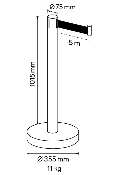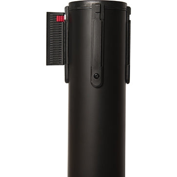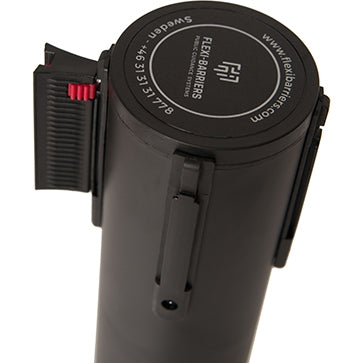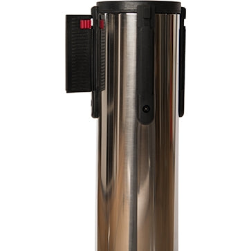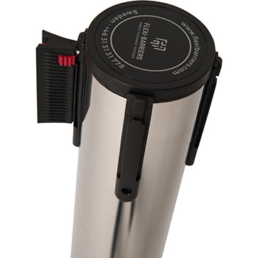 Le Flexibarrier -Basic 500- a un poteau en acier et une base en acier galvanisé remplie de béton, accompagnée d'un protecteur de sol qui couvre toute la circonférence. Les ceintures rétractables de 4,9 m sont plus longues par rapport à la norme industrielle de 2,3 m, ce qui signifie que 45 % de barrières en moins seront nécessaires.