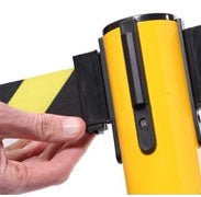 Le Flexibarrier SafetyPlus 10m est une barrière à sangle avec une sangle rétractable extrêmement longue de 10,6 mètres (!). Le mécanisme de sangle rétractable intégré contient un ressort qui garantit que la sangle est toujours sous tension, même si elle n'est pas entièrement déroulée. Le SafetyPlus est équipé d'un bouton sur le mécanisme qui peut être utilisé pour verrouiller la sangle.