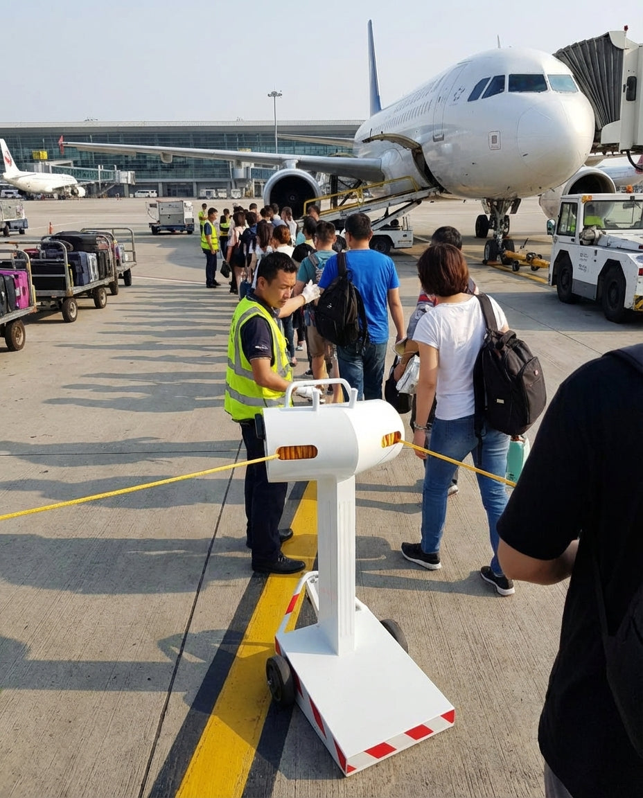 Flexibarrier -Rewind- Système de gestion d'accès/passagers (PAM) est un système facile à utiliser, manuellement opéré, qui résiste à tous les types de météo. Comme la corde est fine, elle ne prendra pas le vent et donc le Flexibarrier -Rewind est la solution parfaite pour les situations extérieures.