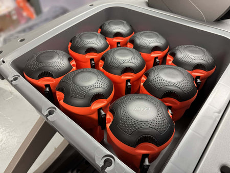 Cône de circulation standard de 1 m entièrement chargé Unicart – 9 cônes, 9 unités Skipper et pack d'accessoires