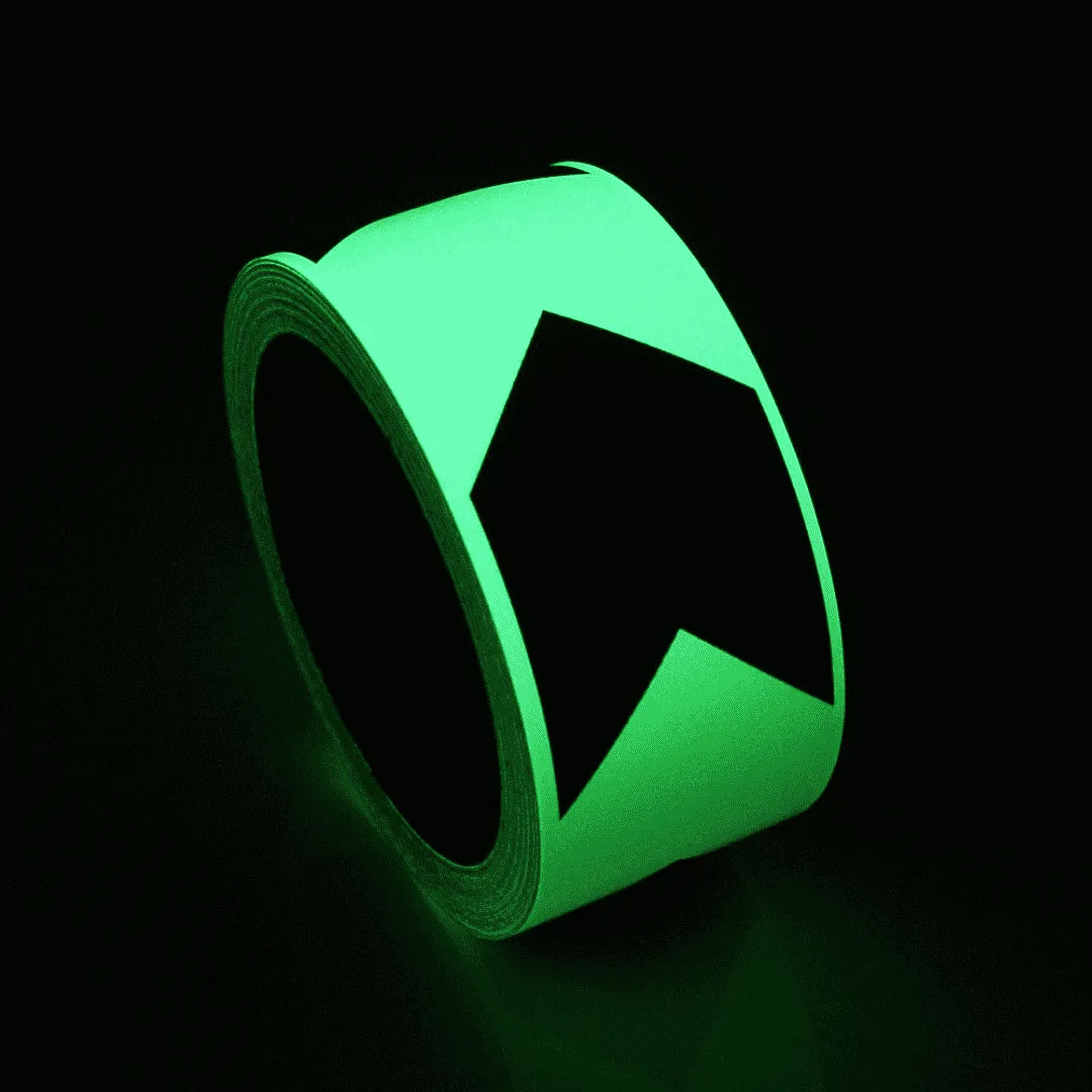 Ruban de Marquage Directionnel Luminescent est un ruban photoluminescent à surface lisse avec un motif de chevrons noirs (flèches directionnelles) pour guider le personnel vers les sorties et les voies d'accès en cas de faible luminosité ou de panne de courant.