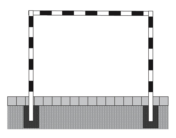 100x100mm / Largeur : 3000mm, Hauteur debout : 2000mm (Ø70mm) / Scellé au sol