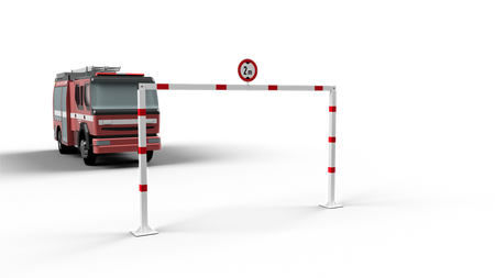 Cette barrière de limitation de hauteur stationnaire est conçue pour empêcher les véhicules dépassant la hauteur libre autorisée de passer. La construction est réalisée en tube d'acier galvanisé à chaud, assurant une excellente résistance à la corrosion et une longue durée de vie. La barrière est finie en blanc avec des bandes réfléchissantes rouges, offrant une visibilité claire à la fois en plein jour et dans des conditions de faible luminosité.