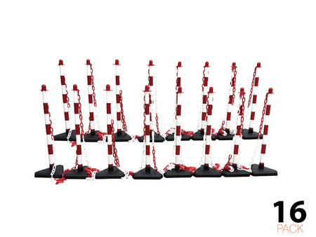 Kit de Barrière à Poteaux et Chaîne -Économique-, 16 Poteaux incl. 25m Chaîne en Plastique (Rouge/Blanc)