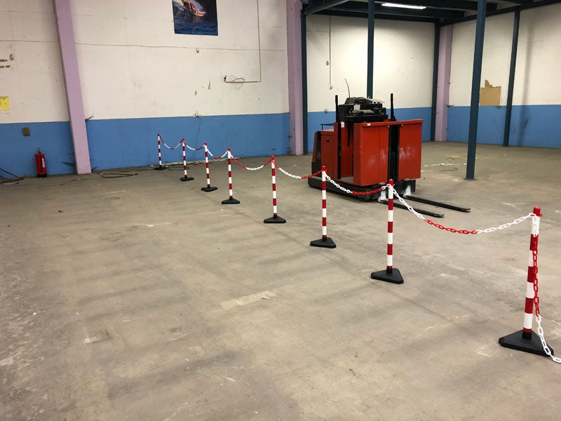 Ce kit de barrière à poteau et chaîne Flexibarrier Economy agit comme un système de barrière temporaire incroyablement polyvalent, idéal pour une large gamme de situations et de circonstances. Que vous ayez besoin d'un kit de barrière pour le contrôle des foules, les parkings, les terrains de sport ou pour bloquer des zones dangereuses, cet ensemble de poteaux et chaînes en plastique constitue un investissement judicieux. Le kit de barrière facile à assembler comprend (16) poteaux en plastique et 25 mètres de chaîne. Les poteaux et la chaîne sont fabriqués en plastique polyéthylène résistant et sont fournis avec une base triangulaire remplie de béton pour les maintenir fermement debout même par temps venteux. Disponible en designs rayés rouge/blanc très visibles, ce kit de poteaux et chaînes est facilement repérable et peut être utilisé dans une gamme d'applications commerciales à la fois en intérieur et en extérieur.