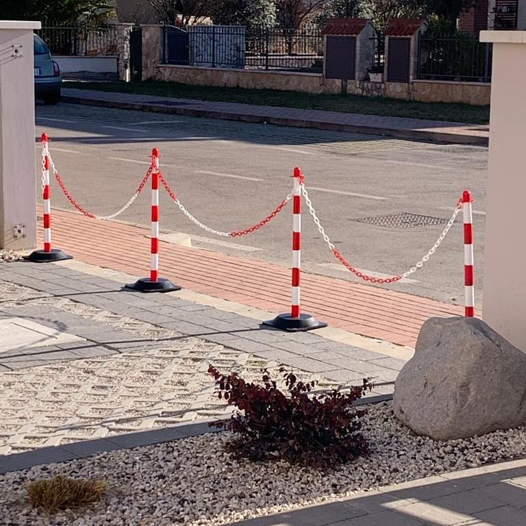 Kit de Barrière à Poteaux et Chaîne -Basique-, 16 Poteaux incl. 25m de Chaîne en Plastique (Rouge/Blanc)