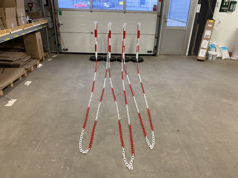 Kit de barrière à poteau et chaîne -Robuste-, 4 poteaux en plastique incl. chaîne de 25m (Rouge/Blanc)