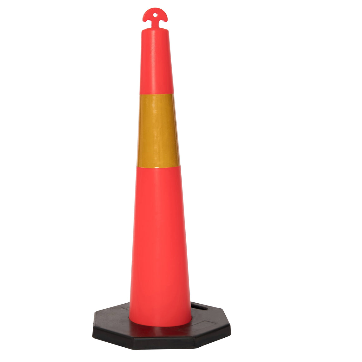 - Le cône empilable T-top de 1150 mm de hauteur est fourni avec une base en caoutchouc robuste de 8 kg pour une stabilité accrue même dans des conditions de circulation rapide ou des endroits venteux.