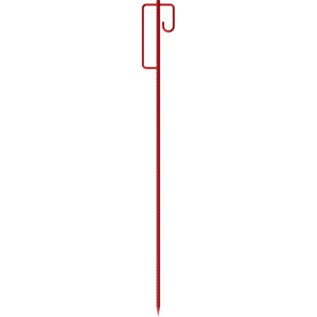 Piquet métallique avec boucle en U soudée pour la fixation de nos filets de barrière et de neige, ruban de barrière, câbles, cordes, etc. La lance en métal peinte en rouge est fabriquée à partir d'une tige rainurée de ø12mm avec une pointe forgée pour un montage facile dans le sol.