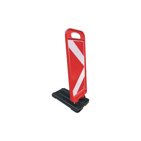 Sa couleur à fort contraste et son film réfléchissant double face assurent une visibilité de jour comme de nuit. Le cadre robuste en PP-PVC et la base en caoutchouc antidérapante offrent une stabilité accrue, même dans des conditions météorologiques difficiles. La poignée de transport intégrée facilite le transport et le déploiement où que ce soit nécessaire.