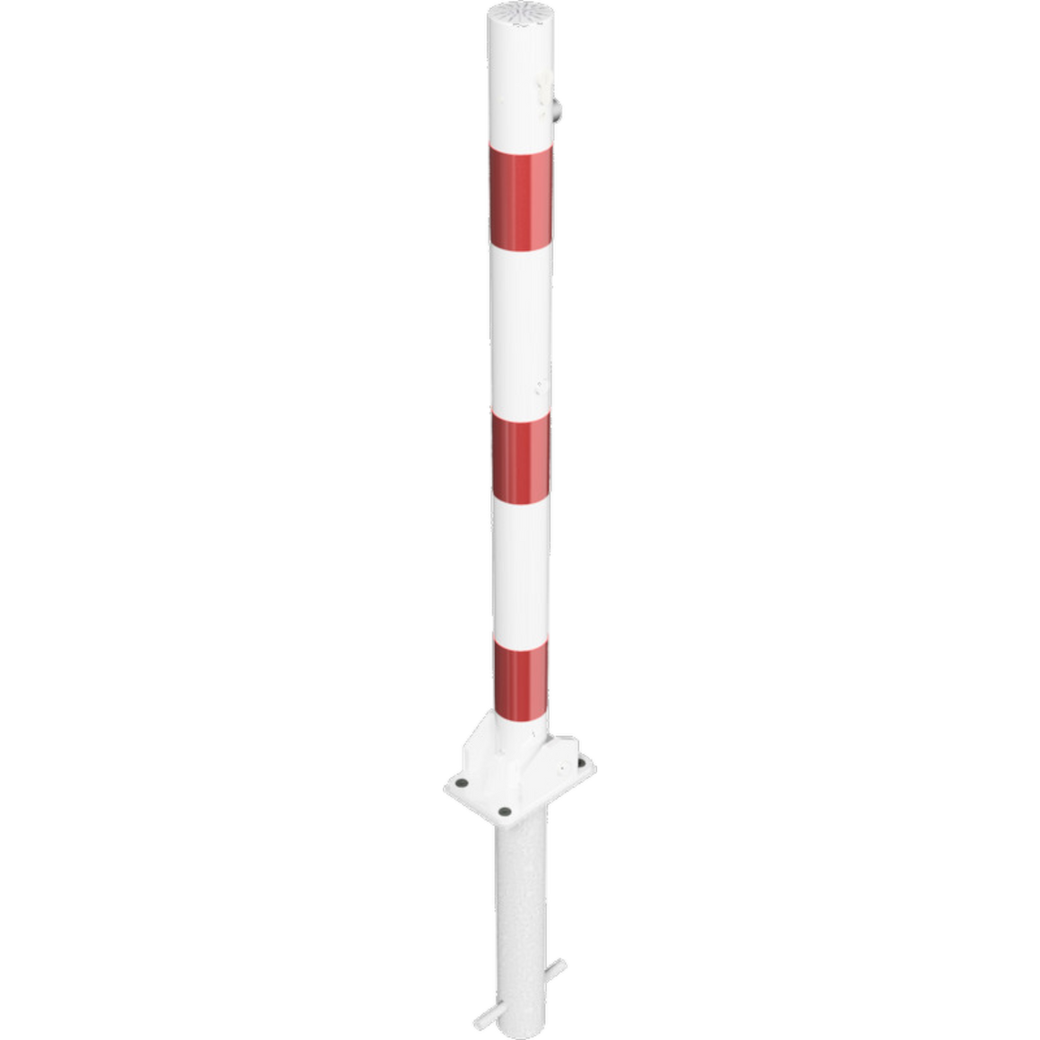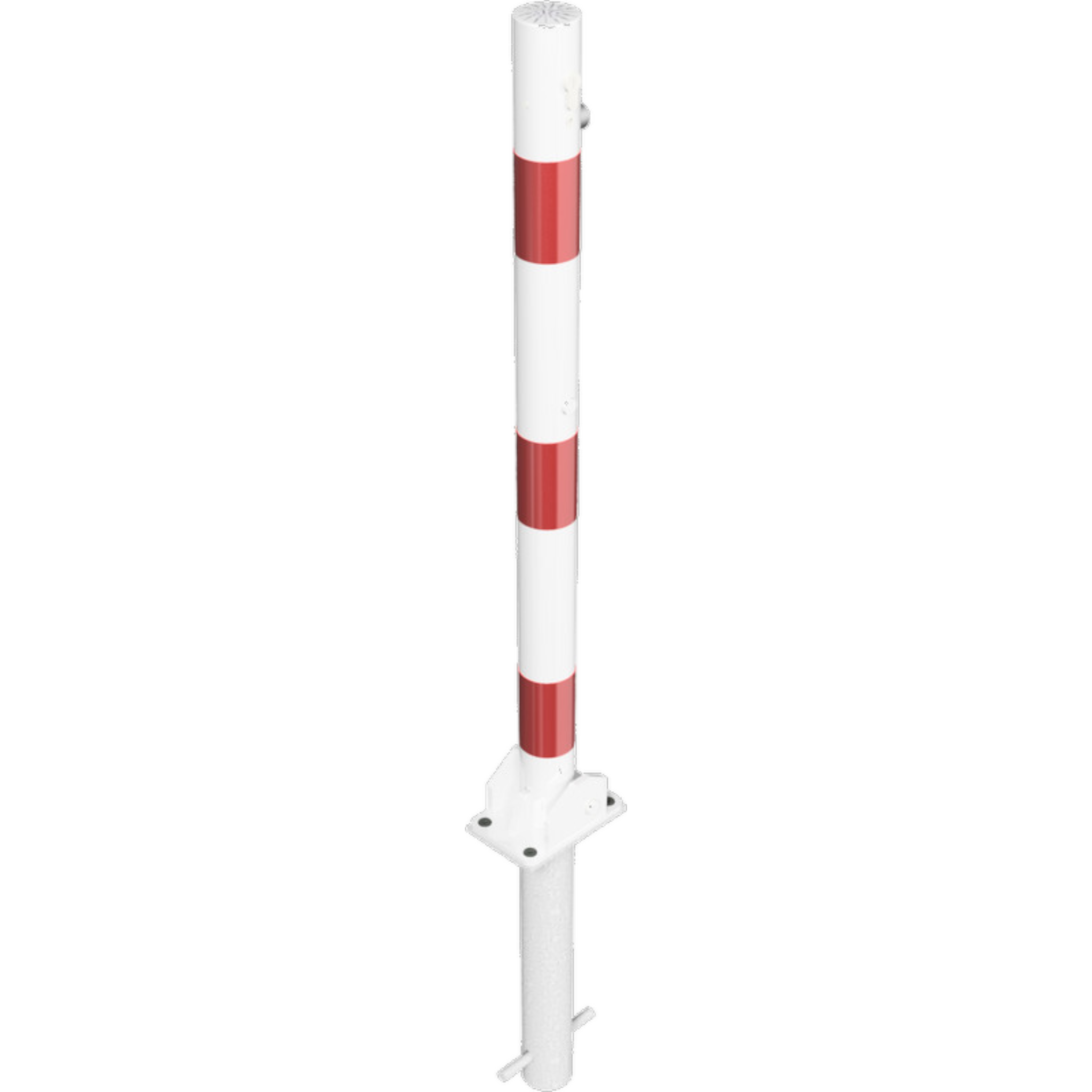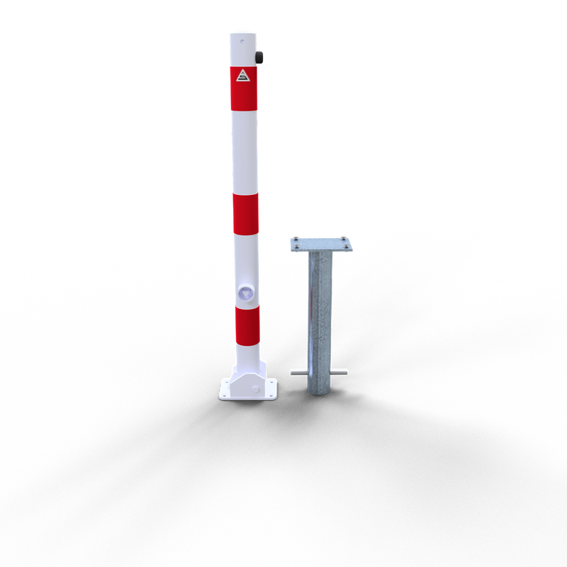 Pour une stabilité accrue, il y a une douille de sol optionnelle qui est coulée à 400 mm sous terre. Ensuite, la borne est fixée avec 4 boulons qui sont inclus.