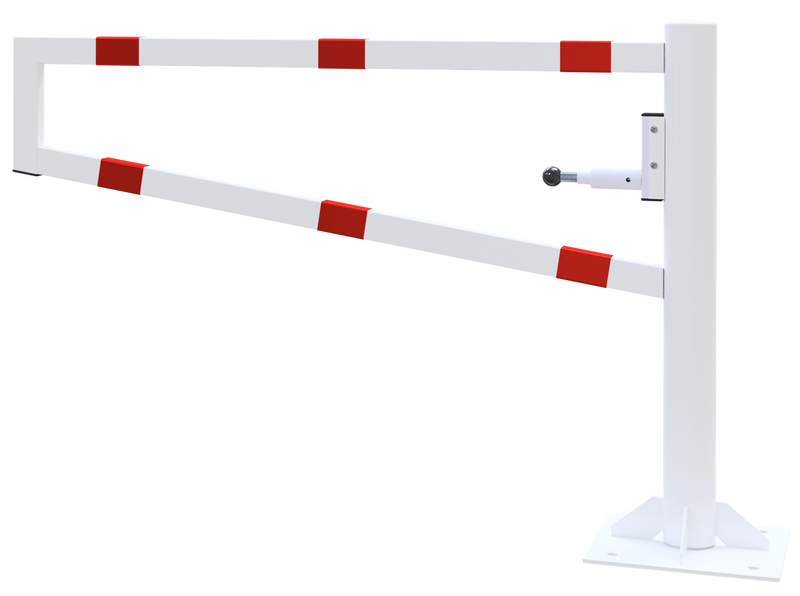 Fixation par boulons - Galvanisé à chaud et revêtu de blanc avec des bandes réfléchissantes rouges / Mécanisme de verrouillage triangulaire / 1500 mm