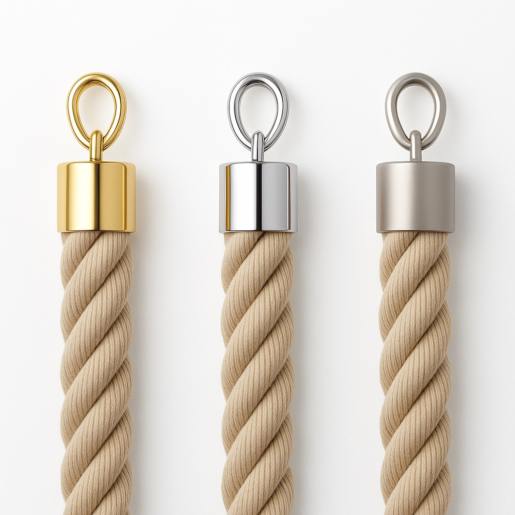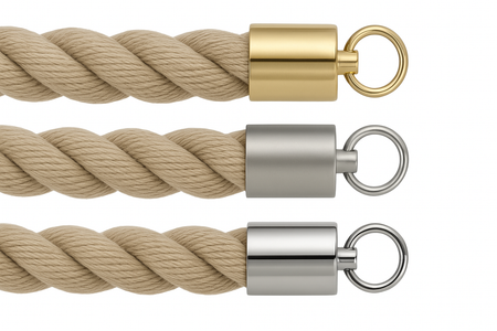 Vous sélectionnez simplement la longueur dont vous avez besoin — de 1 mètre jusqu'à 20 mètres. Si vous avez besoin d'un ajustement précis, la corde peut être facilement coupée à la longueur souhaitée à l'aide d'outils standard. Complétez votre installation en choisissant des embouts et des supports muraux assortis en chrome poli, chrome mat ou laiton.