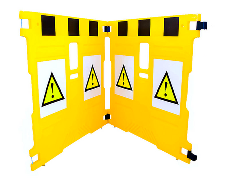 SuperGard est un système de barrière modulaire plus haut et plus large, conçu pour offrir une sécurité accrue lors de la délimitation des zones de travail du grand public pendant les travaux de réparation ou d'entretien. Idéal pour les escaliers mécaniques et les trottoirs roulants, les ensembles de 2 panneaux peuvent être reliés entre eux grâce au système de charnière breveté à encliquetage. Mesurant 1100 mm de haut et 1100 mm de large, cette clôture de sécurité durable et légère offre une flexibilité accrue avec des panneaux individuels supplémentaires de 550 mm. Cette barrière polyvalente est fabriquée en polyéthylène robuste et durable. Chaque cadre de panneau est équipé de pieds en caoutchouc pour offrir une excellente adhérence sur toute surface. Ce panneau à finition lisse et polie permet un nettoyage facile tandis que les panneaux se replient pour un rangement aisé.