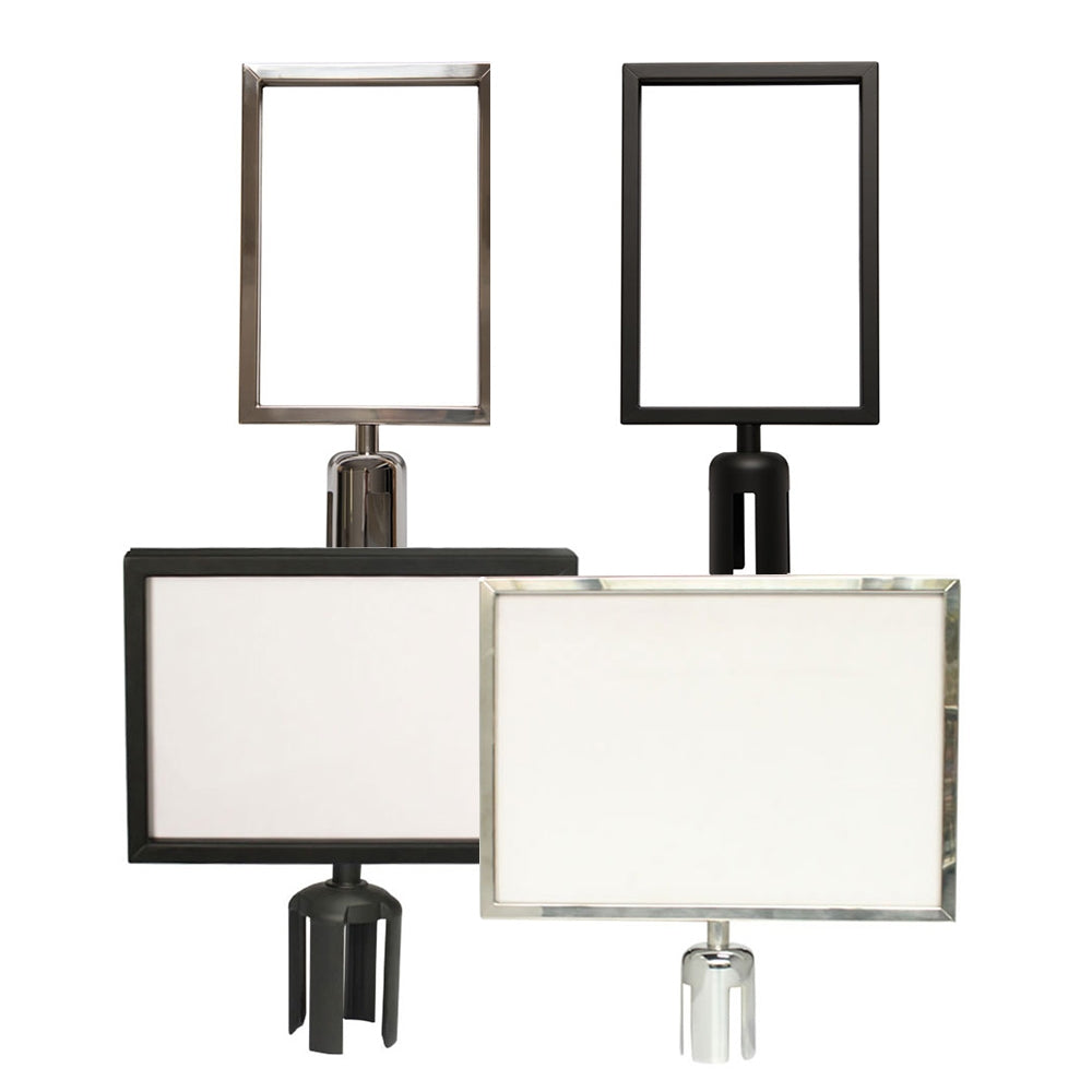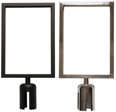 Les cadres pour barrières à sangle rétractable sont équipés d'un adaptateur de sommet de poteau qui se glisse sur le dessus du poteau pour un ajustement ferme. Les cadres pour poteaux à corde sont équipés d'un goujon et se vissent directement dans le sommet taraudé du poteau. Des adaptateurs et des goujons sont disponibles pour s'adapter à toutes les grandes marques de poteaux.