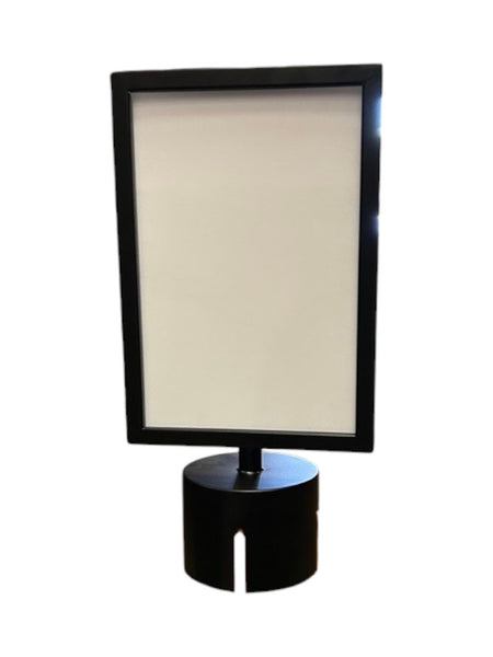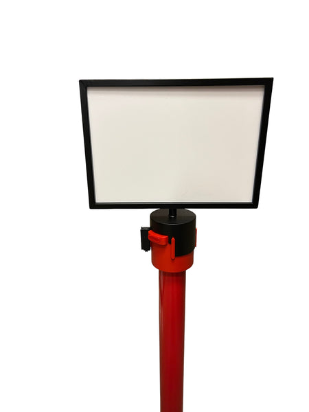 Ce porte-affiche vertical A4 est spécialement conçu pour s'adapter aux poteaux à sangle rétractable Flexibarrier Outdoor 1050 (10.6m) et Safetypro 1050.