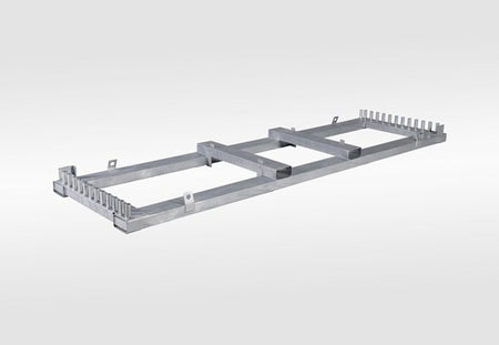 Palette de transport robuste en acier galvanisé, conçue pour contenir jusqu'à 30 panneaux de clôture temporaire (3,5 m). Conçue pour le stockage, la manutention et le transport efficaces des systèmes de clôture sur les chantiers de construction ou les zones d'événements.